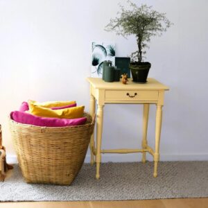 Solgul vintage sidebord med en skuffe