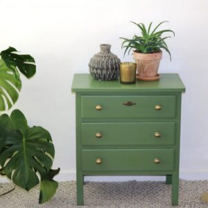 Grøn vintage sidebord med tre skuffe
